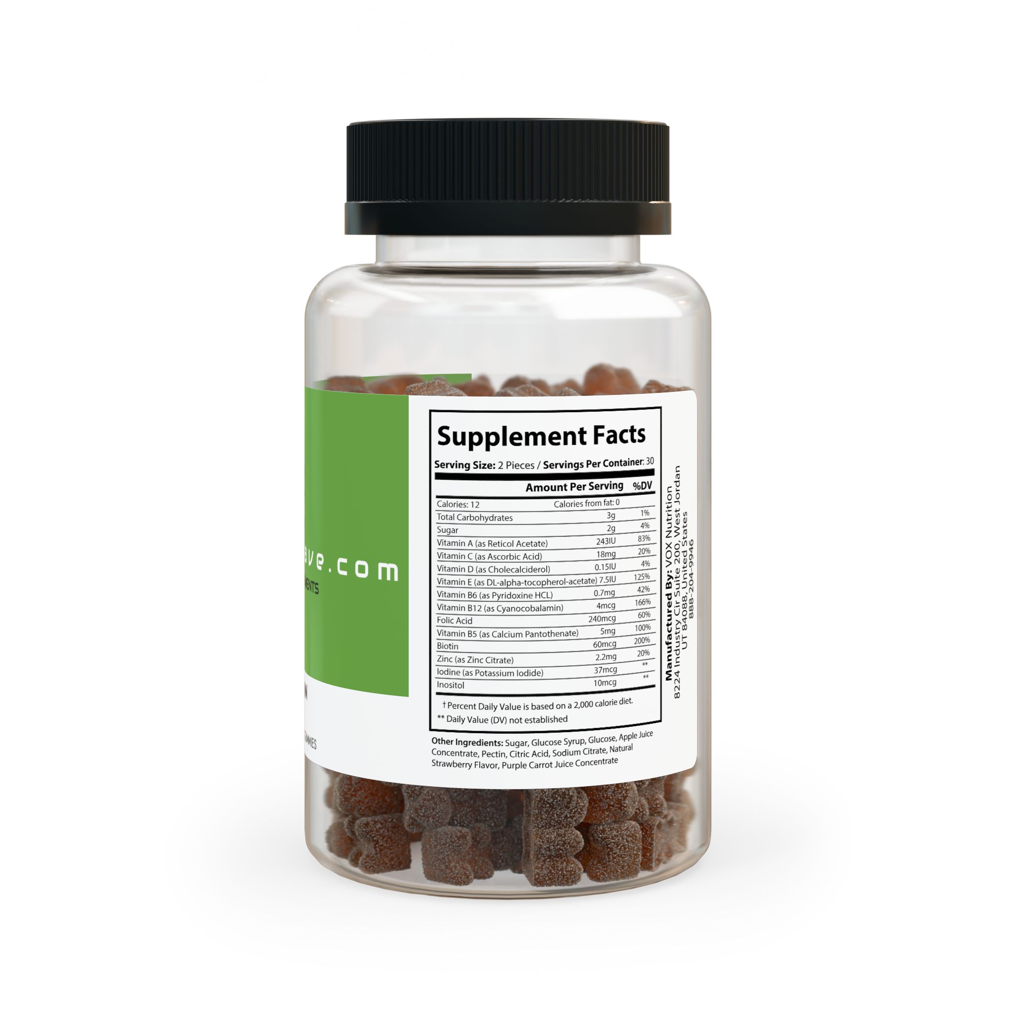 The Multivitamin Gummies Supplement for adults offers a high bioavailable source of iodine and polyphenols to support exercise performance, increase antioxidant support, support the conversion of food into cellular energy, and support hair health.