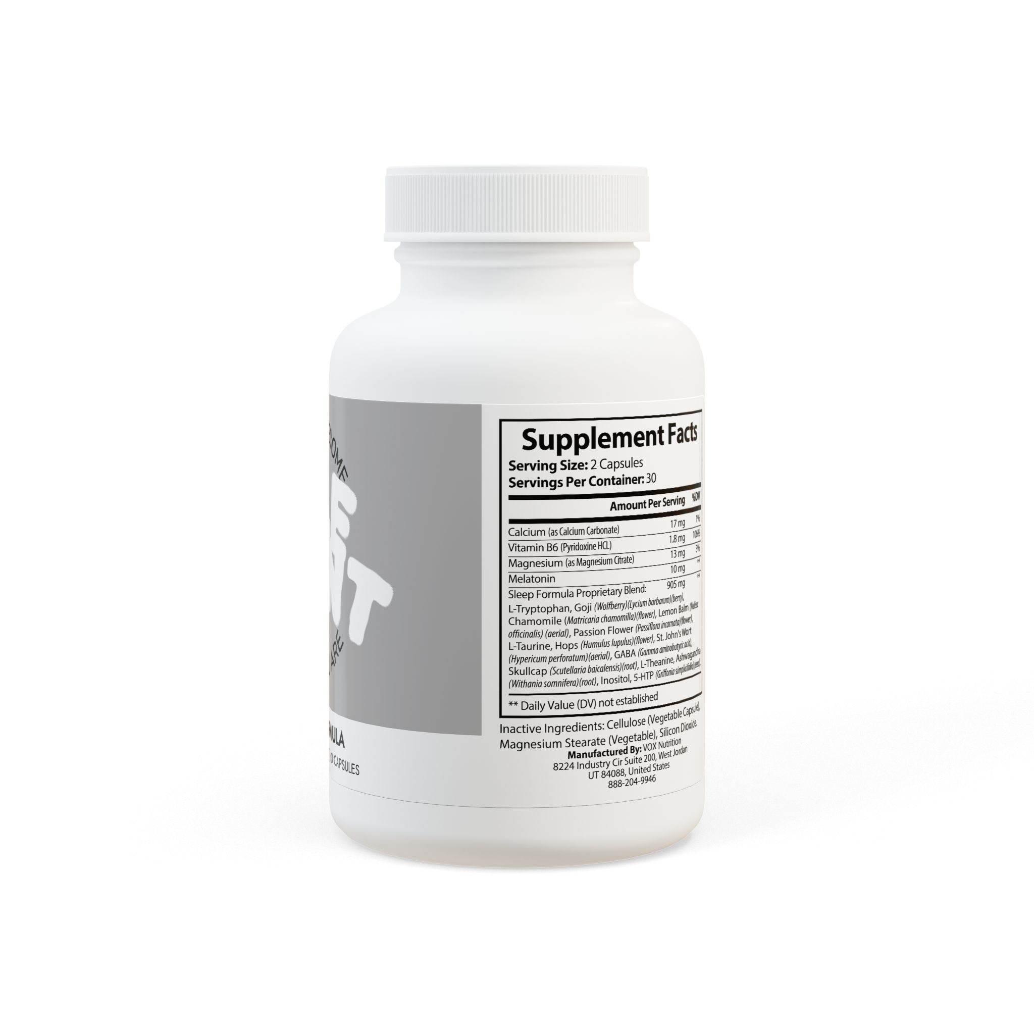 Ingredients: Calcium (as Calcium Carbonate), Vitamin B6 (Pyridoxine HCL), Magnesium (as Magnesium Citrate), Melatonin, Sleep Formula Proprietary Blend: L-Tryptophan, Goji (Wolfberry)(Lycium barbarum)(berry), Chamomile (Matricaria chamomilla)(ower), Lemon Balm (Melissa